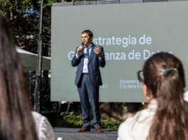 El intendente de Escobar, Ariel Sujarchuk, durante un acto realizado en el Teatro Seminari, anunció la reapertura de la renovada Feria del Trueque de Maquinista Savio...