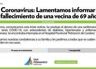 Falleció una vecina de San Fernando por coronavirus