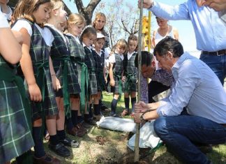 Posse y alumnas del Colegio Buen Ayre plantaron árboles en Uruguay