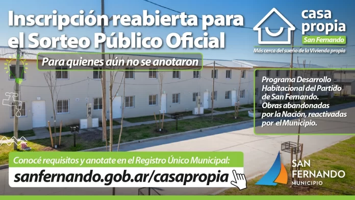 Gracias a esto, fue anunciado que en pocos días 46 familias numerosas de San Fernando, de 5 o más integrantes, podrán cumplir el sueño de tener su hogar mediante un Sorteo Público Oficial con transmisión en vivo entre quienes se hayan registrado y cumplan requisitos específicos. En el sitio web www.sanfernando.gob.ar/casapropia se encuentra toda la información, bases, condiciones de financiación y el acceso al Registro Único Habitacional.