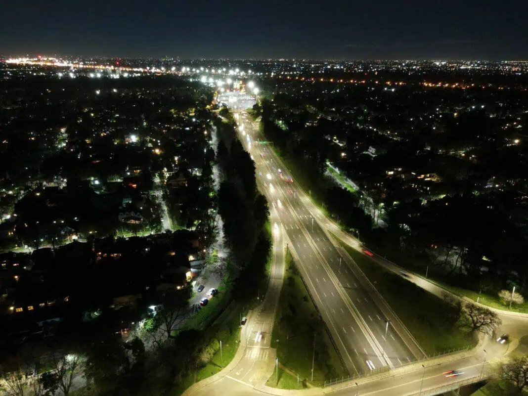 El Municipio inició el recambio a tecnología  LED de las  luminarias en las colectoras y frentes de la Autopista Panamericana, que atraviesa el distrito de norte a sur, priorizando el beneficio y la seguridad de los vecinos.